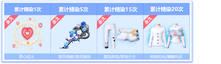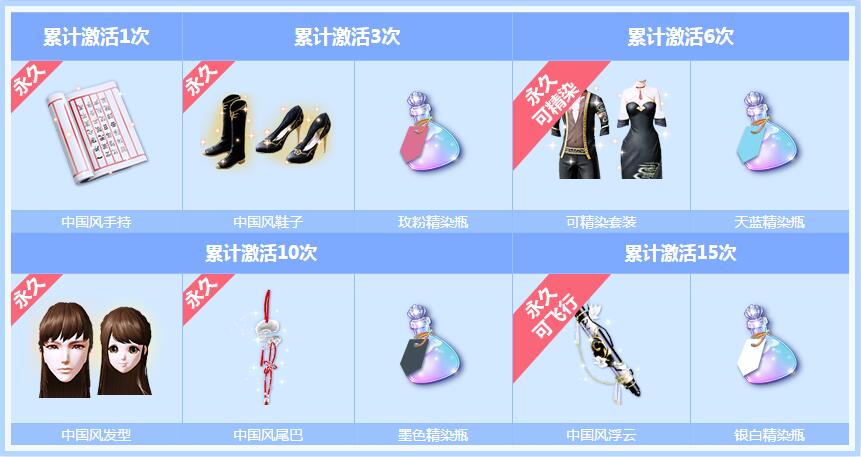 累计激活达到指定次数可以领取点亮奖励哦!全新可精染服饰等你来拿!还是永久期限的哦!