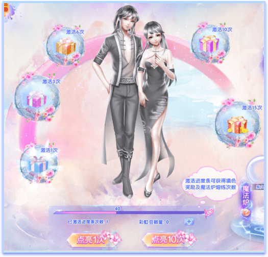 使用彩虹豆点亮进度条,当进度条满时可获得获得3次魔法炉熔炼次数。