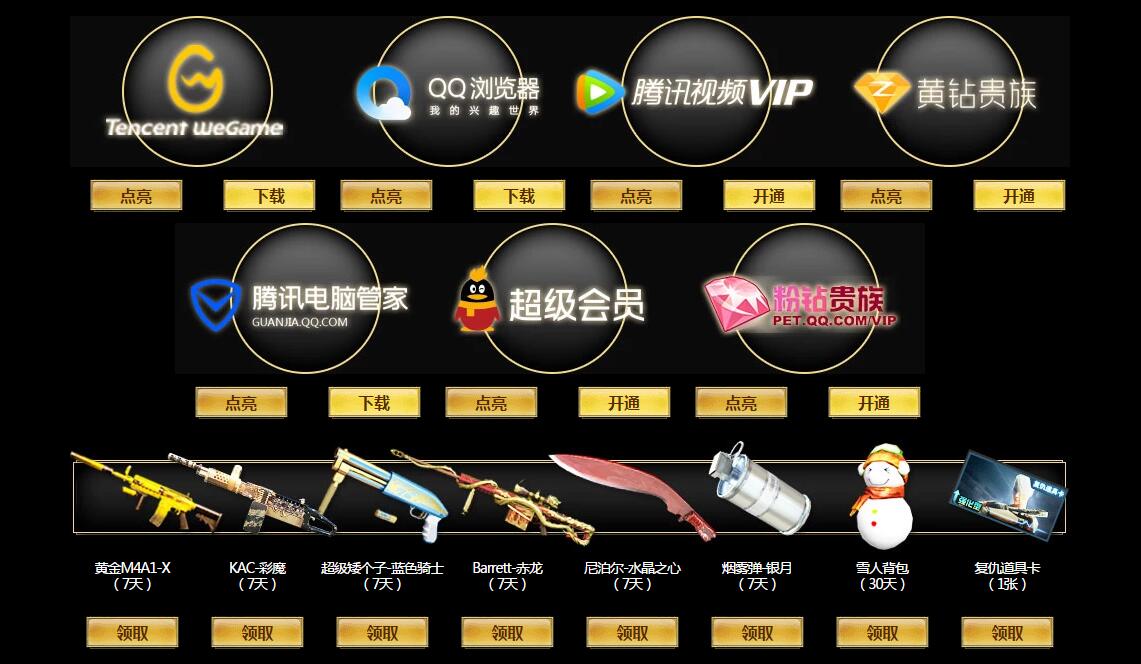 活动期间,用户每点亮一个特权图标,即可领取1件装备,每件装备最多领取1次。