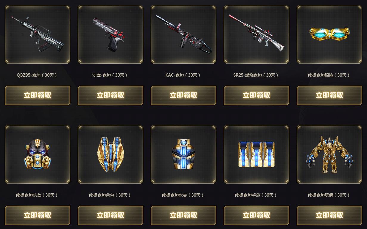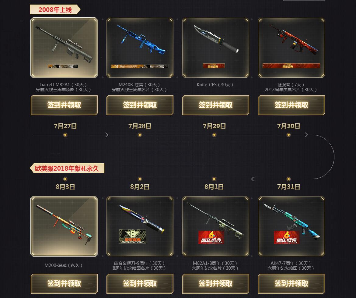 玩家在指定日期于活动页面签到,即可领取相应的道具(M200-涂鸦需要领取全部之前的所有7个道具后,才能领取)