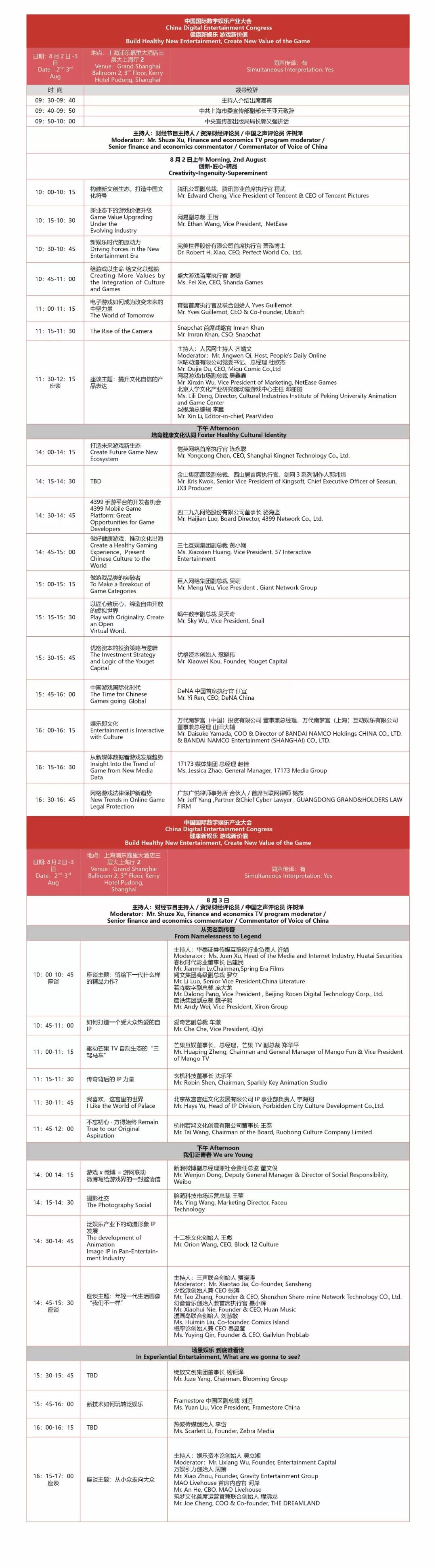 2018中国国际数字娱乐产业大会(CDEC)将于2018年8月2日~8月3日在上海浦东嘉里大酒店隆重召开,大会日程目前正式公布!(具体信息以大会现场为准)