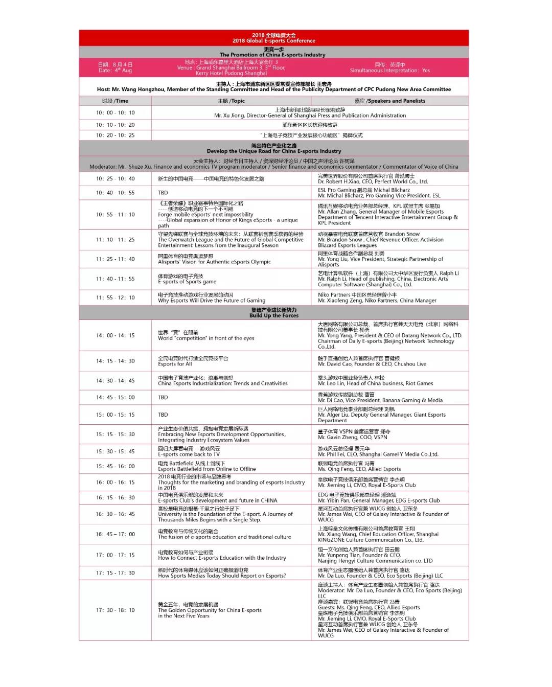 2018全球电竞大会以“更竞一步”为主题,将于2018年8月4日在上海浦东嘉里大酒店隆重召开,大会日程目前正式公布!(具体信息以大会现场为准)