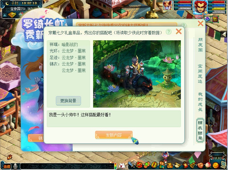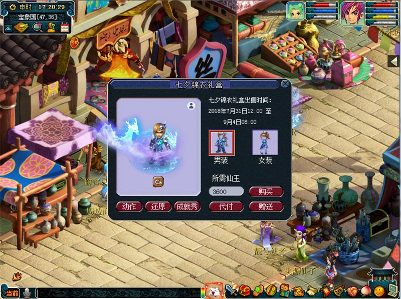 活动期间,各位玩家可前往宝象国(55,39)七夕仙娥处购买礼盒。不仅如此,云龙梦七夕礼盒内的锦衣(头饰、上下衣、光环、足迹)均可以进行自定义染色和特殊染色。赶快来抢购云龙梦七夕礼盒,秀出你的风采,也秀出你的特别。