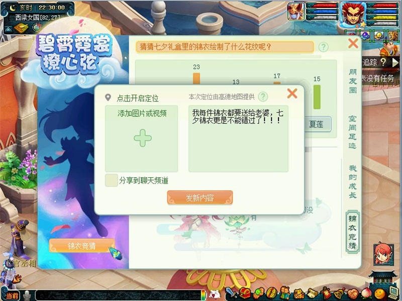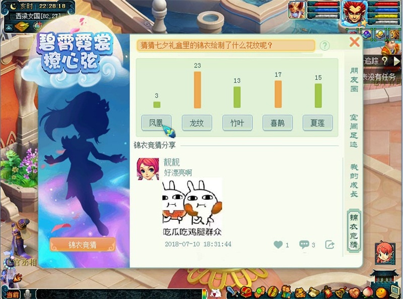 就在上周,大家翘首以盼的七夕限量锦衣礼盒还披着神秘的面纱,免单的福利就已经开始了。不管是通过对锦衣竞猜专栏里的爆料图进行竞猜,还是通过游戏个人空间发表带有#一万个买锦衣的理由#话题的动态内容,亦或者为其他朋友的动态点赞,均能参与抽奖。