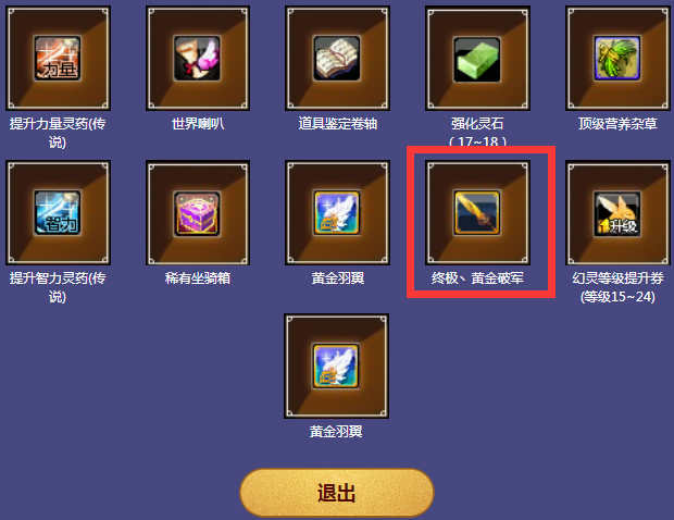 宝箱钥匙用于开启宝箱,开启宝箱可随机获得终极黄金武器、稀有坐骑、稀有幻灵、永久鲁德魔石、永久披风、黄金羽翼、暗黑碎片、元素结晶、传说坐骑饰品等稀有道具。对于不满意的道具,玩家还可以任意选择4个道具,合成一个黄金羽翼。并且宝箱十连开可额外获赠1个道具,赠送的道具必为黄金羽翼,黄金羽翼可用来在游戏内阿斯商店处兑换终极黄金武器。当然,如果运气爆表的话,还能在宝箱中直接开到终极黄金武器哦!