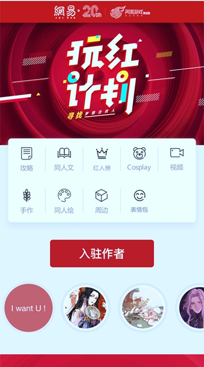 写得一手好文,谱得一首好曲,画得一席好画……只要你在手工、cos、音乐、视频、写作、绘画等方面有特别的专长,并且热爱游戏,愿意用多元的形式创造游戏的衍生价值,丰满游戏的文化内涵,就可以加入“玩红计划,成为网易游戏的梦想合伙人,更有机会享受多重特权好礼。