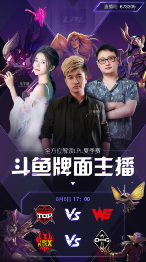8月6日,joker、久哥哥、无千语将组成“铁三角”,解说TOP vs WE、FPX vs OMG两大比赛。