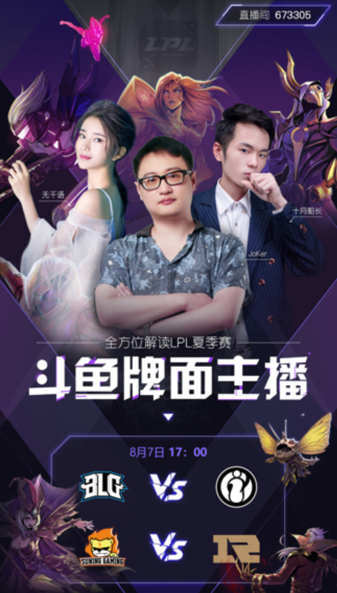 英雄联盟直播领域,斗鱼愈发显现王者之气。8月6日、7日,在英雄联盟LPL夏季赛新一轮比赛中,斗鱼宣布将邀请joker、久哥哥、无千语以及十月船长四大实力主播,参与本轮LPL比赛的二路解说。