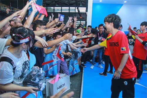 下午,上海龙之队出现在了网易主舞台的体验区与粉丝们热情互动、签名、合影。队员们贴心并且仔细地为粉丝们所准备的物品签上自己独特唯一的签名,并且一一合照,所有的心思都是为了回馈一路以来支持者上海龙之队的粉丝。队伍的受欢迎程度远远超乎想象,很多粉丝开玩笑地表示粉丝人潮过多,“排队排得瘦两斤”。随后上海龙之队正式在网易主舞台登台亮相,粉丝们也非常给力地做出了响应。
