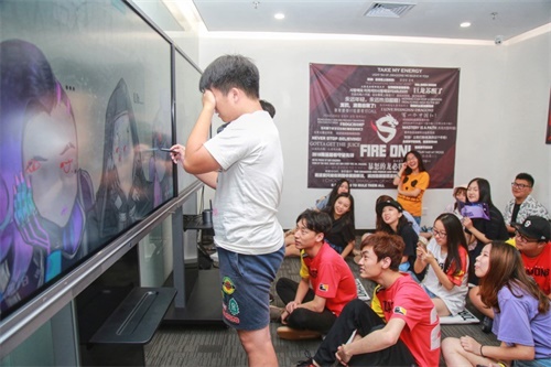 与此同时,上海龙之队中的韩国选手沉浸在了自己的艺术世界中。他们画了什么呢?这个问题当然要由粉丝们来解答了。不得不夸奖一下大家的绘画水平都非常高,呱姐画的卢西奥、Ado 画的路霸、大哥画的 76 奶棒“生物立场”以及 Daemin 画的布丽吉塔都非常生动形象。在翻译的帮助下,粉丝们当面表达了自己对这些韩国选手的喜爱和支持,而队员们也将自己刚刚画完的作品送给了粉丝以示感激。