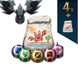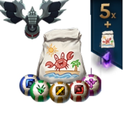 帝王蟹大礼包-购买25个五杀摇滚 守卫(7天)赠送:5套位置法球(每套包含上路、中路、打野、射手和辅 助法球各1个),1个宝石,1个螃蟹福袋,以及限定的美味饮品图标