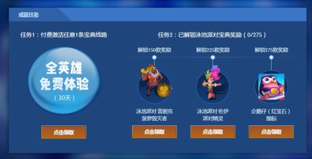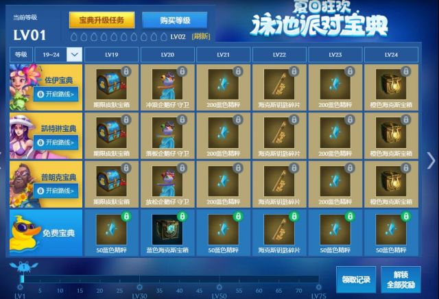 加里奥宝典是一条路线,可免费的也就几个,无非就是花个三十五块钱的事情,现在一条免费路线但是奖励基本上没有空的,开启一个路线需要75,讲道理你单买一个泳池派对的皮肤就是这个价钱了吧?中间有不少发球可以开,还有钥匙和炫彩,传送门,橙色海克斯宝箱(我不知道是什么)还有图标和其他随机泳池派对皮肤可以领。