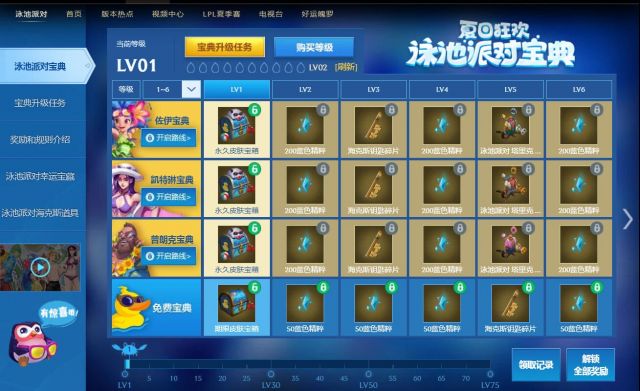 lol鬼才策划又出新活动,忘记上次的鸡里奥活动肝到100级的恐惧了吗,没错,这次泳池派对宝典的活动更胜鸡里奥,价格更是涨了一大些,虽然说这次单个奖励变贵了,路线也变多,可是奖励也不是一样多?只要你有时间玩就绝对不算亏。