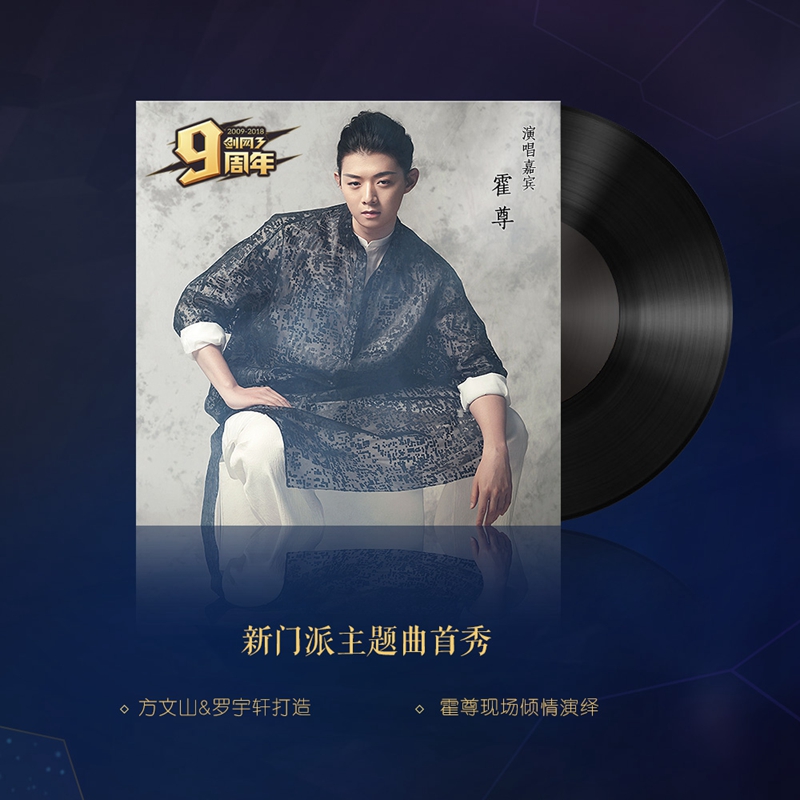 霍尊曾在东方卫视原创戏曲文化类节目《喝彩中华》中与《剑网3》粤剧决战天策府有爱互动。本次作为嘉宾受邀参与《剑网3》九周年嘉年华发布会庆典,并将献声演唱本次新门派主题歌曲。以天籁之声,演绎荡气回肠的江湖乐曲。