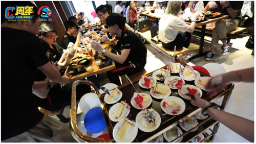 游戏环节的尾声,战队选手将亲手准备的礼物送给到场的粉丝。而最让人印象深刻的是一周年纪念蛋糕的登场,当这个象征着Team CC成长和荣誉的蛋糕缓缓推出时,无论粉丝还是队员都感受到了暖人的庆祝氛围,大家纷纷拿出相机拍照留念,将这宝贵的一刻定格在相册中。