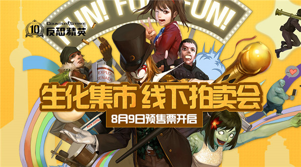 《反恐精英Online》十周年疯狂生日趴8月25日空降魔都!“生化集市”——一次不按套路出牌的玩家见面会。霸主年神现场叫卖,拍卖币只能现场挑战获得!小游戏玩得好,人人是大佬!还有神秘嘉宾激情助阵,开发团队亲临爆料,神秘新模式呼之欲出!8月9日至8月15日购票通道限时开启,赶快参加吧!