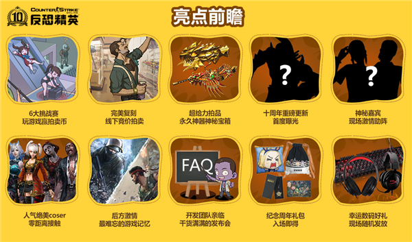 说到“十”,人们总会想到十全十美。而此次《反恐精英Online》十周年生日会为大家精心准备了十大看点,希望能带给CSOLer们最完美的一次线下会面!