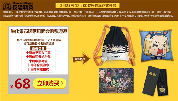 凡成功购得见面会门票的玩家,在8月25日当天,将可以在现场领到整整一套十周年独家纪念周边大礼包。里面不仅有萌出血的安娜&爱丽丝萌娘抱枕、十周年特制环保帆布包、印有十周年大合照的游戏鼠标垫,还有极具收藏价值的十周年绝版专属金属徽章哦!