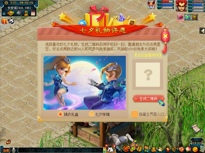 七夕佳节即将来临,在遥望星空之际,无数少侠也为自己与爱侣许下了一份美好心愿。现在,《梦幻西游》电脑版为少侠打包了两份礼物,为少侠送上一份七夕浪漫气息。在活动期间,等级≥50级的少侠可以通过长安城的七夕小仙打开“七夕礼物许愿”界面,在云龙梦七夕礼盒免单和情缘晶币(10个)免单中选择其一。在此之后,电脑版玩家可点击“生成二维码”即可显示专属二维码,使用手机扫一扫即可打开个人专属七夕心愿页面。使用互通版的玩家则能直接点击分享按钮,将生成的页面分享至社交软件里。只要好友通过这一页面帮助少侠点亮梦幻七夕星空,少侠即有机会获得七夕好礼免单大奖!