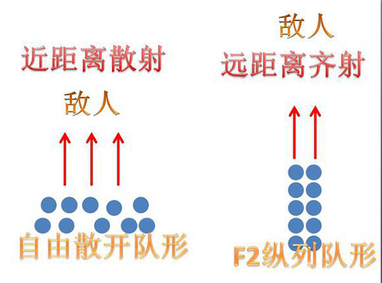 在远距离对射的情况下,一般要使用纵向队形,这样可以是所有士兵朝着一个点进行攻击,从而提高射击伤害,目前几乎所有弓箭手都会采用该射击阵型(除阿蒙内特和李广外)。具体的操作方式是先用F2把士兵在需要的敌方排成纵队,主将再站到中间去指挥齐射!