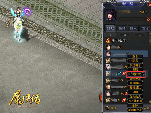 《魔侠传》不一样,帮会成员可以看到帮内兄弟的位置,兄弟在哪和人打架马上传送过去帮忙。除此之外,《魔侠传》的好友系统还有一个特别的功能“飞向好友”。兄弟被欺负,一键飞过去,不用怂就是干!