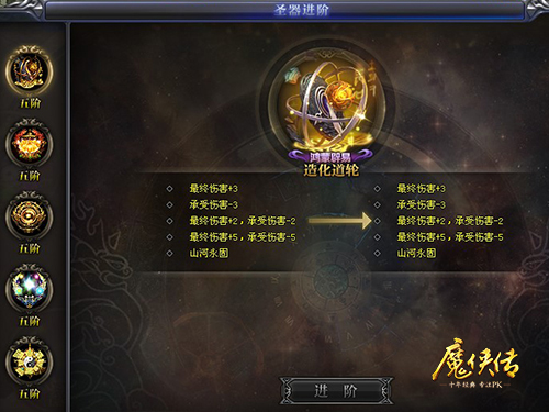 在玩游戏的时候,大家总会犹豫“我应该堆输出还是堆防御呢?”五阶圣器上线,烦恼全不见!五阶圣器有强大的保命功能,能回血、减伤、隐身,如果触发生存型神通,则攻击型神通等级也同步会提高。