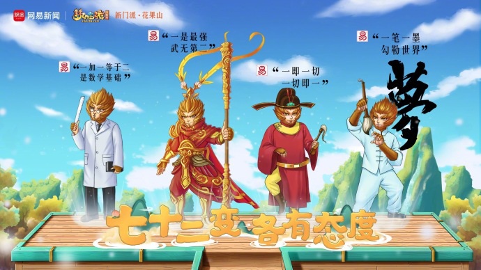@网易新闻客户端 的联动最早上线,“七十二变,各有态度”,说的是齐天大圣七十二变的绝技,也是网易新闻做有价值、有深度、有思考的新闻的定位。世界之大,有齐天大圣能文能武可静可动;世间百态,看@网易新闻 解锁新鲜视角接触大千世界。