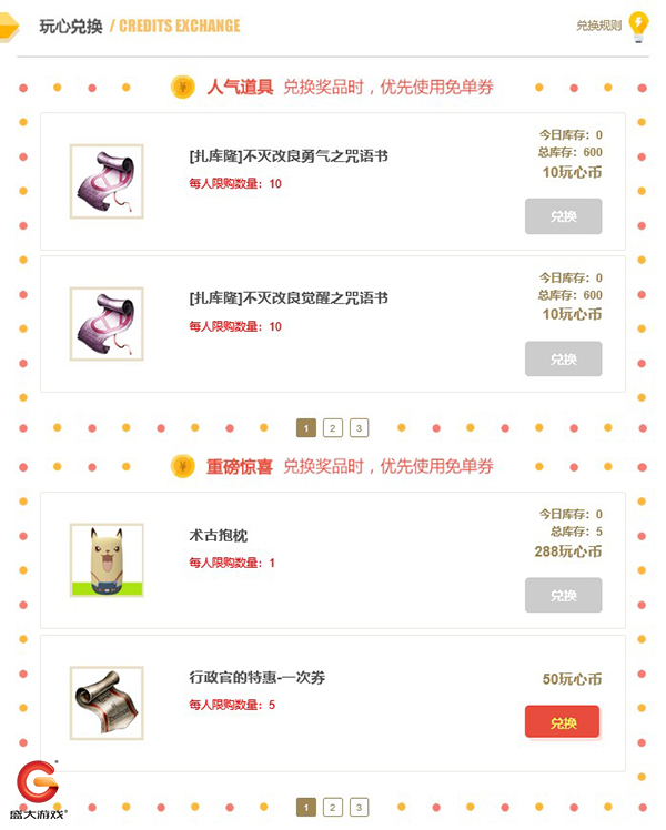 备受玩家喜爱的“玩心兑换“活动将会一直持续到网游节当天,和之前的玩法相同,玩家们只需每日完成简单的游戏任务即可领取玩心币,积累到一定数量便可免费兑换自己心水的游戏道具,无论是《传奇永恒》灵药符、《泡泡堂》强化卷轴等游戏虚拟道具,还是《冒险岛》花蘑菇U盘、《龙之谷》青蛙头套猫玩偶等精美实物周边,总有一款是你的菜。