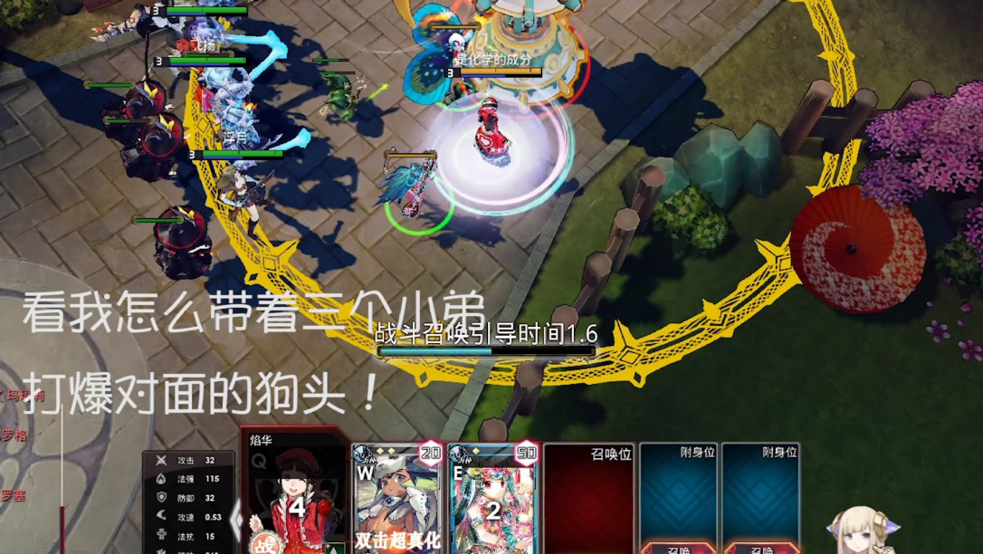 在对各种卡牌组合一顿操作猛如虎后,争夺红莲之王的战役正式打响了,但这时你发现跑出基地的英雄只有一个技能,慌乱中打开召唤界面,看到提前组好的卡牌,于是拖入召唤栏中,再用类似传统MOBA游戏中技能键,瞬间召唤出这些卡牌使魔,这时,另一个惊喜来了!