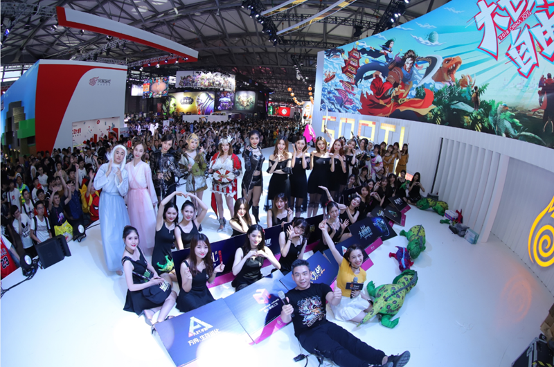 不止游戏,蜗牛更准备了从10公分的迷你小恐龙,到4米长的巨型仿真恐龙。Showgirl手里牵的是恐龙,活动玩儿的是“驯龙高手”,舞台上学的是“恐龙舞”,玩家手里抱的还是霸王龙。在蜗牛展台看不到恐龙是完全不可能的!