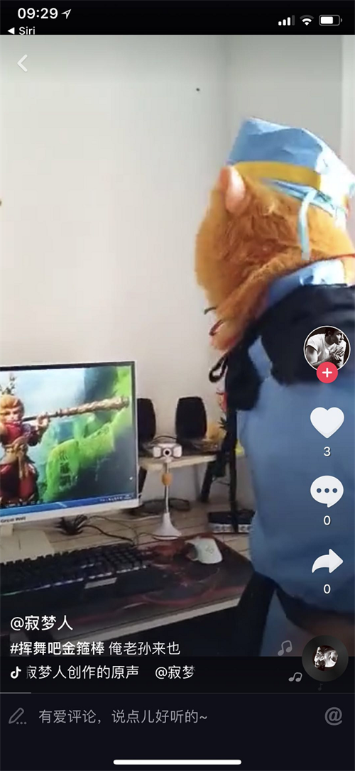 玩家@寂梦人 则干脆身着孙悟空cosplay服,面对镜头,一展自己深厚的棒下功夫。