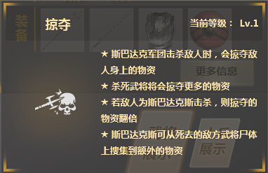 自身及其军团击杀敌方军团或主将,将会从敌方身上掠夺到不同数量的物资,若敌人被斯巴达克斯击杀则掠夺的物资翻倍,而斯巴达克斯还可以从死去的敌方武将身上搜到额外物资。