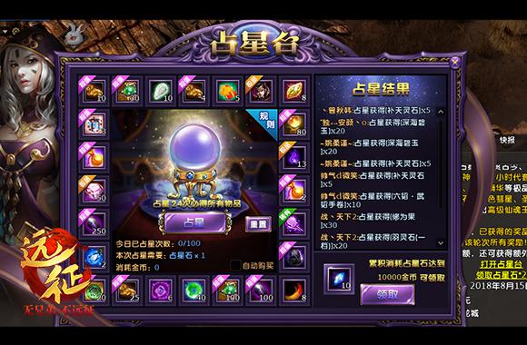 自古以来占星术就是众人所尊崇和不解的神秘之术,而《远征》中延续这一属性,特设置占星台,供玩家开启神秘宝藏,占星台能贯古今、串未来,埋藏着重铸之石、雷神之锤、小时代套装、元神精华等极品宝藏,还可重置出觉醒石、赤色彗星、祝福卷轴等珍贵道具!天境文明更可重置出高级仙魂玉和炼仙玉等天境材料!占星24次必得此轮所有奖励!这样的大放送实在是难得,活动即将截止,小伙伴们抓紧时间哦!