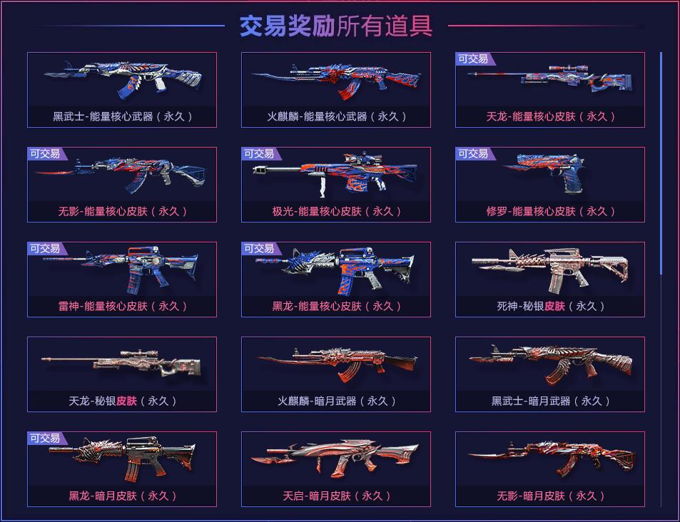 《穿越火线》百万交易员活动现已开启,活动期间选择一个地点进行交易,有一定概率获得永久黑武士、火麒麟等武器或皮肤奖励。地图上四个地方的奖励概率各不相同,且每天都有一个地点选为幸运地点,在此交易将获得额外奖励。