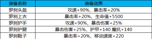 集齐5件罗刹装备,开启套装效果增加200%暴击伤害和20%的攻击