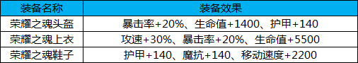 集齐3件荣耀之魂装备,开启套装效果攻击时有10%的几率造成双倍伤害