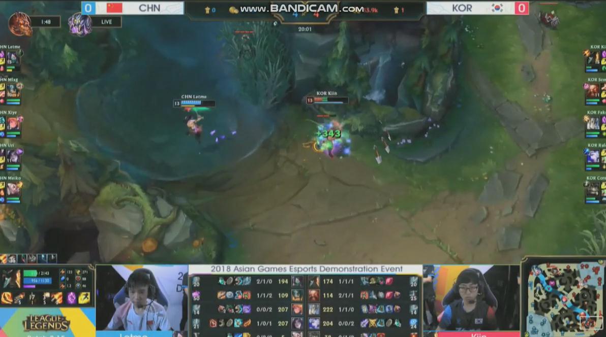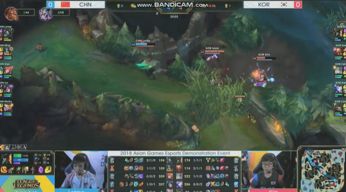 在刚刚结束的2018雅加达亚运会电竞项目《英雄联盟》小组赛第二轮中,中国队经过30多分钟的鏖战,最终以4:12的人头比不敌韩国队。在比赛进行到20分钟的时候,中国队上单Letme阿卡丽被抓单,随后比赛节奏被韩国队掌控,最后在32分钟左右韩国队在男爵BUFF下,一路推到中国队高地,拆掉水晶结束比赛。