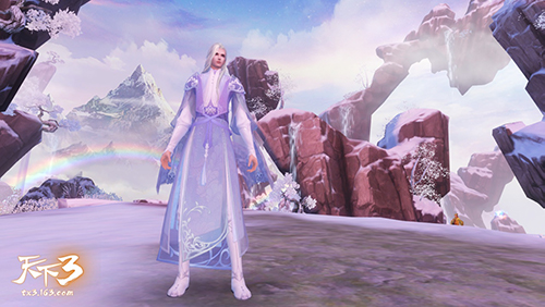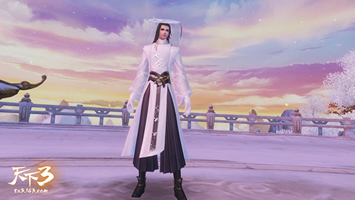 而男装颜值超高的蓝紫色薄纱外衣与纯白内衬,尤显风流倜傥,微拢的长发更让少侠你如月下仙人一般出尘飘逸,堪称男装届的一颗新星!