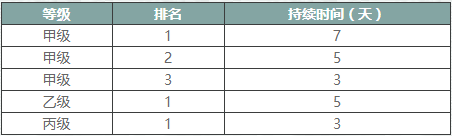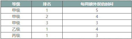 获得以下排名的服务器将在跨服赛结束后的四周内获得额外双倍时间: