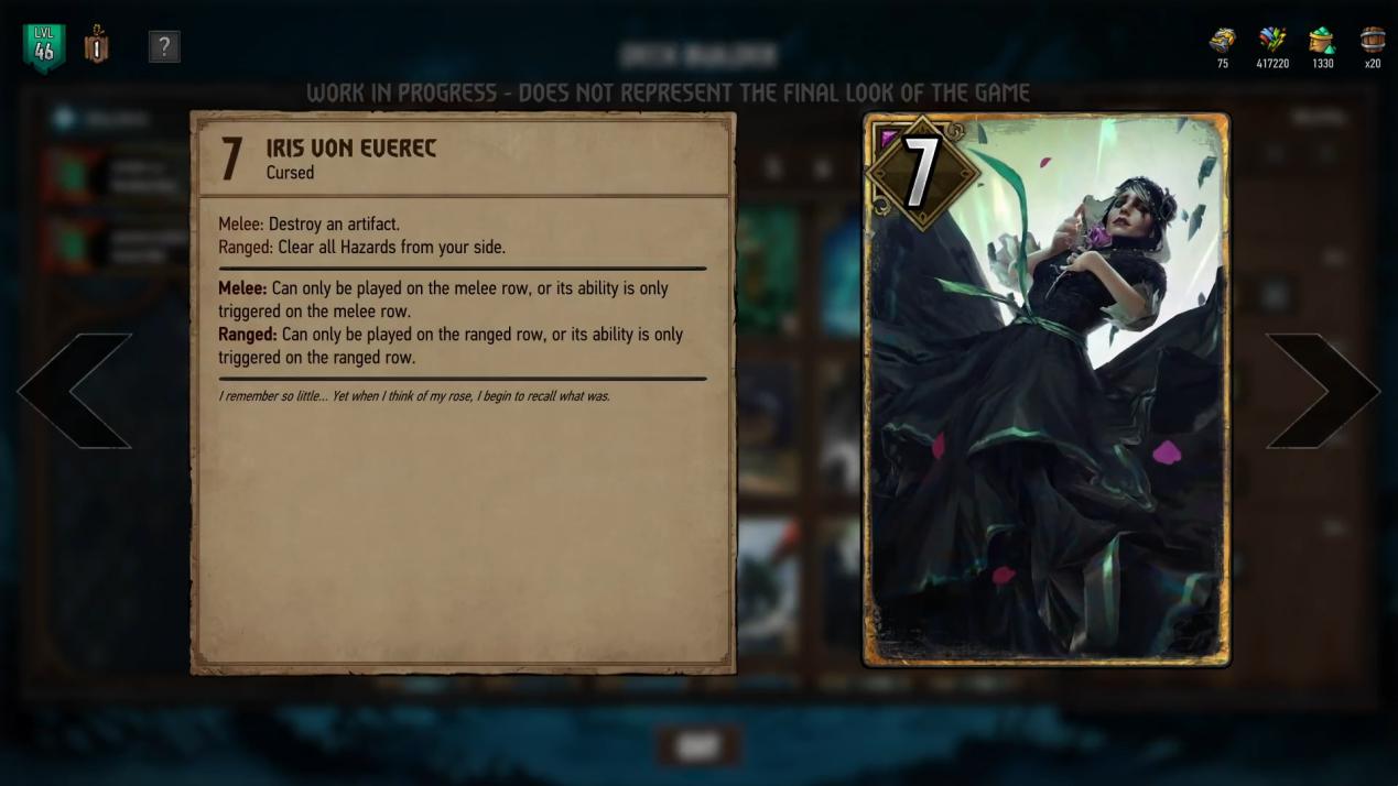 因此,《巫师之昆特牌》将会拥有全新的”行列限定“技能:我们不会限制你将卡牌放置在哪一行,但某些能力只会对特定的行列起作用,你手中的卡牌甚至可以在近战行和远程行里有不同的技能。并且提示框中的内容也会更加简洁,便于阅读。