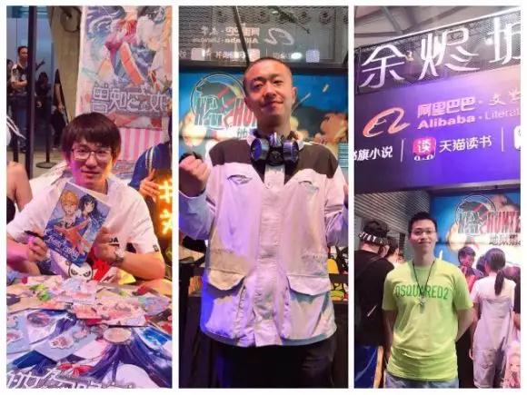 (从左至右依次为:阿里文学作家刘阿八、阿里文学作家墨熊,著名网络文学作家天蚕土豆)