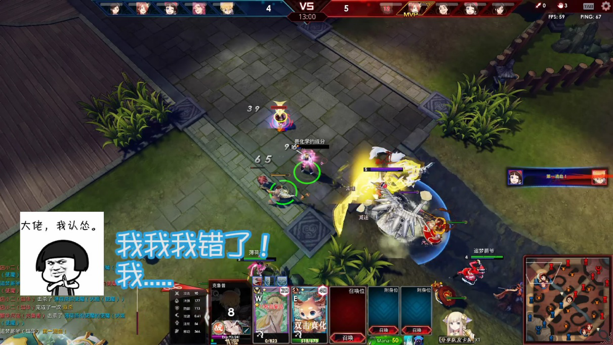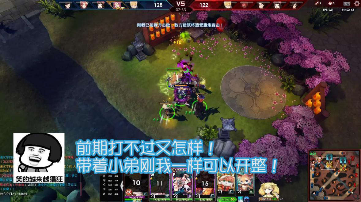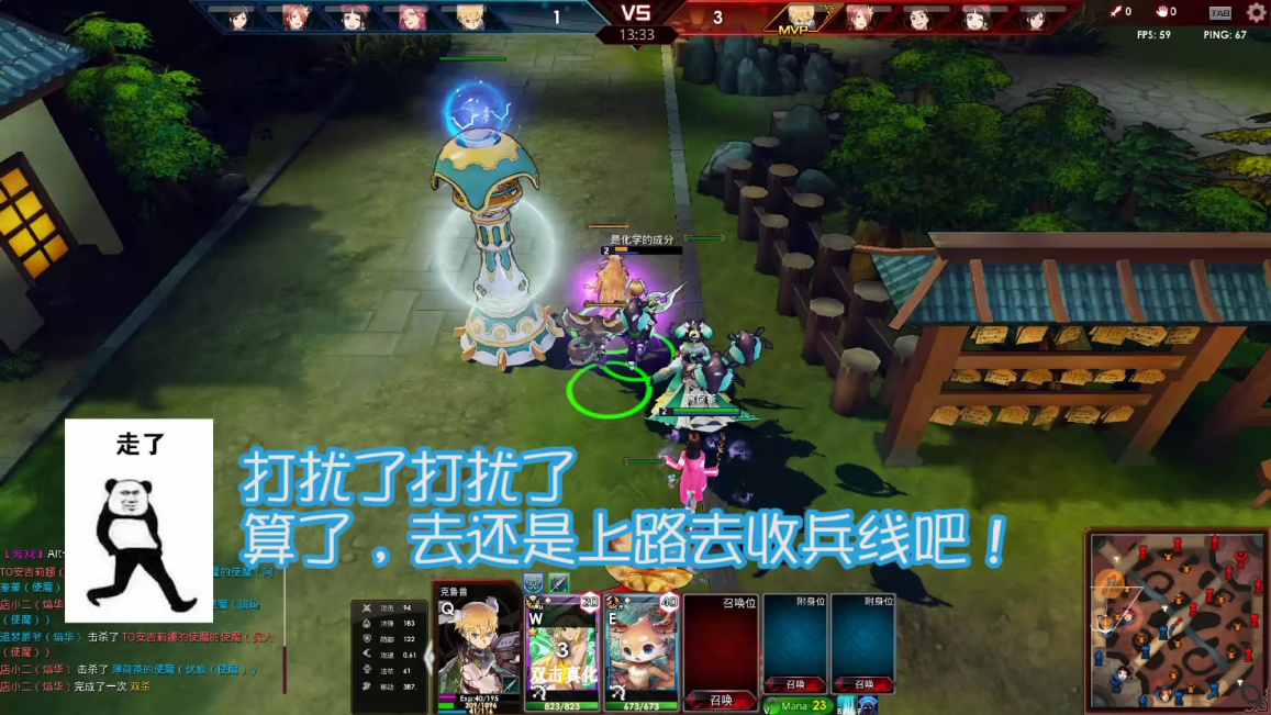 在一片打扰声中,这位玩家开溜准备去上路收一波兵线。一切似乎刚刚好,一个残血对手立马就被逮到,再加上自己这边刻印者加上两位卡牌使魔的强大阵容,相比其他MOBA游戏里单个英雄去抗敌,完全不用担心被秒掉。