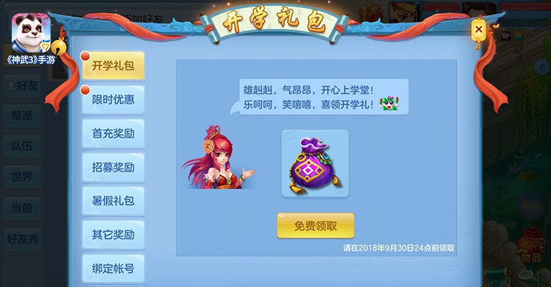 【图3 神武3手游2018秋季开学礼包闪亮登场】