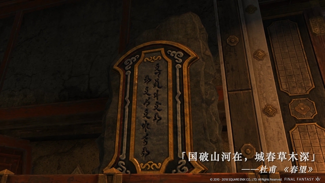 在FF14 4.3版本中,除了许多故事和内容引入的东方神话故事的元素,在建筑、剧情各方面也极具东方风,许多细节的部分也值得玩家去发现。比如下面这些游戏中的壁字: