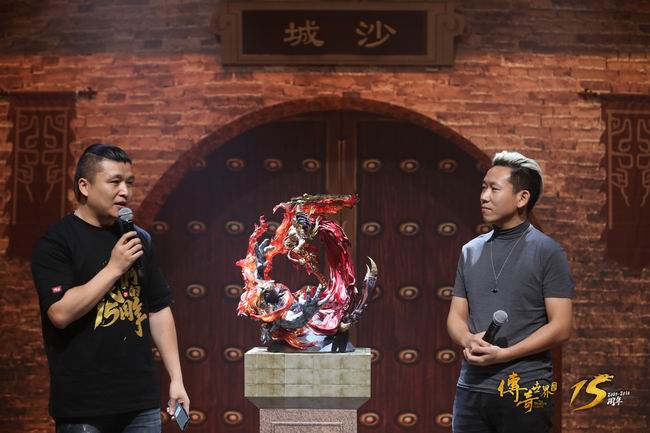 除了攻沙外,在赛事盛典上15周年手办的揭秘仪式也颇为博人眼球。本次《传奇世界》手办的雕像原型制作人由曾为《英雄联盟》、《满城尽带黄金甲》等众多游戏电影创作过主题手办的锈石老师担任,此款手办的主题雕像历经了5个月构思设计、90天塑形、55余个部件的打磨和上百道工序的上色过程,最终新鲜出炉。