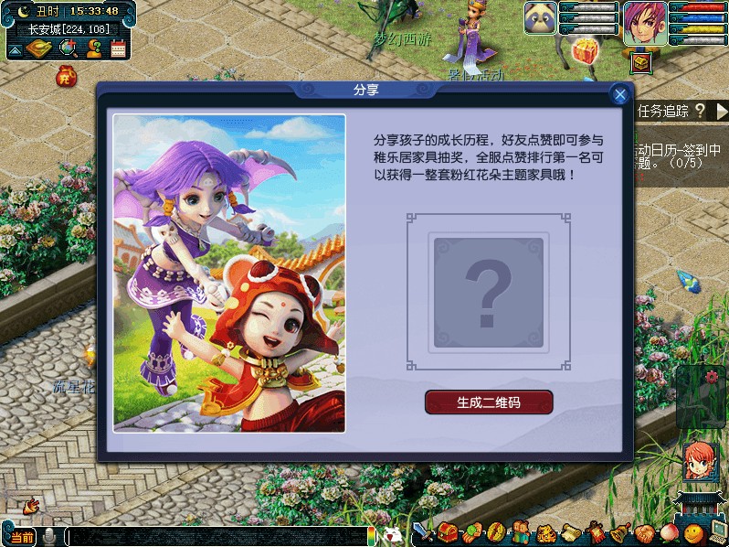 少年不识双亲意,养儿方知父母恩。“快乐童年”新资料片推出了特别活动“孩子成长全记录”,邀所有奶爸奶妈前来记录养娃过程中的乐闻轶事。本次活动将于2018年9月11日12:00至9月12日12:00在部分服务器测试,9月12日12:00至9月24日12:00在全部服务器放出。届时,玩家可前往长安城(224,107)炫娃狂魔处开启“孩子成长全记录”界面,记录孩子成长过程中的点点滴滴;此外,还可以在孩子养育界面点击分享按钮,分享养育孩子的历程,邀请好友给孩子点赞。