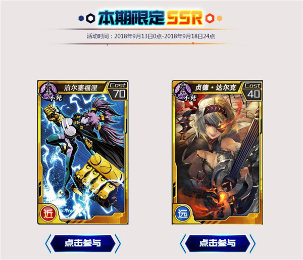 除尼妙卡牌外,加入了全新的第五种族”不死”,增加了7个“不死族”使魔。SSR【贞德·达尔克】、SSR【泊尔塞福涅】、R【阴阳师·安倍晴明】、C【拉斯普廷】、SR【犹大】、R【啾噗】、SR【芭芭·雅嘉】,两张SSR卡还有概率UP的活动哦~