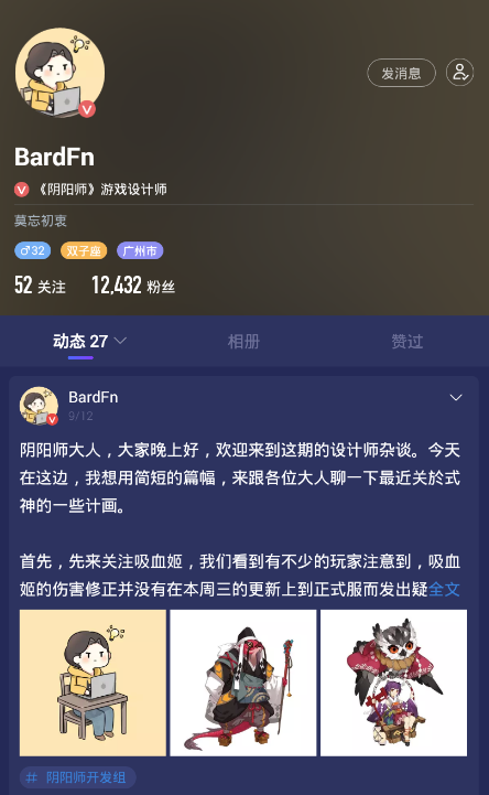 《阴阳师》策划在网易大神爆料式神调整 与玩家有爱互动