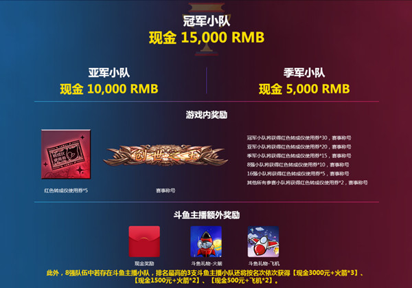 值得一提的是,比赛不但有玩家队还有斗鱼主播队。大神玩家PK人气主播即将上演,巅峰对决一触即发!若斗鱼主播小队挺进八强,最高可额外领取3000元现金奖励~