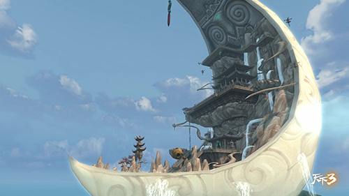 中秋节不赏月可不行!《天下3》最负盛名的两大月亮,当然是在“沐月泉”和“有个小村”啦。黄澄澄的“沐月泉”,圆月静静地悬挂在半空中,饱满圆润,像极了月饼中的蛋黄。而整体造型就是一弯硕大月牙的“有个小村”,同样是高悬在空中一直闪烁着与真正月亮别无二致的光辉,更像是冰皮月饼玉白的外壳,看起来香甜软糯。